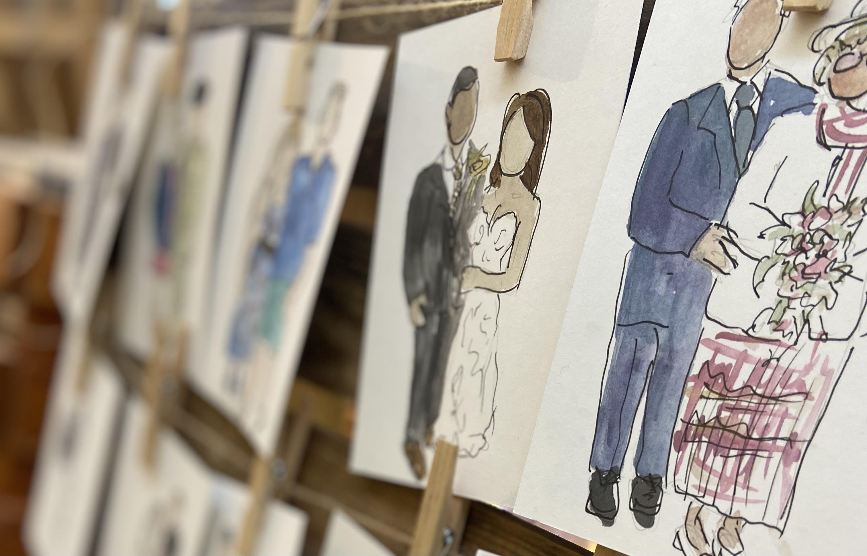 - Additional illustrations or watercolour paintings can be added to any package, of subjects such as Pets, Wedding Vehicles, Venues or Bouquets. These can be completed on the day, requested in advance ( for example to be used for invitations) or completed after your event. These will be quoted for individually.